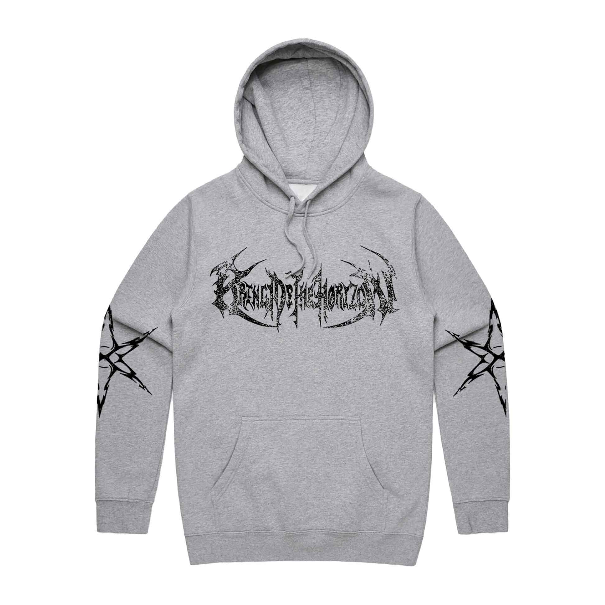 Grey unisex hoodie featuring a BMTH front and back graphic.